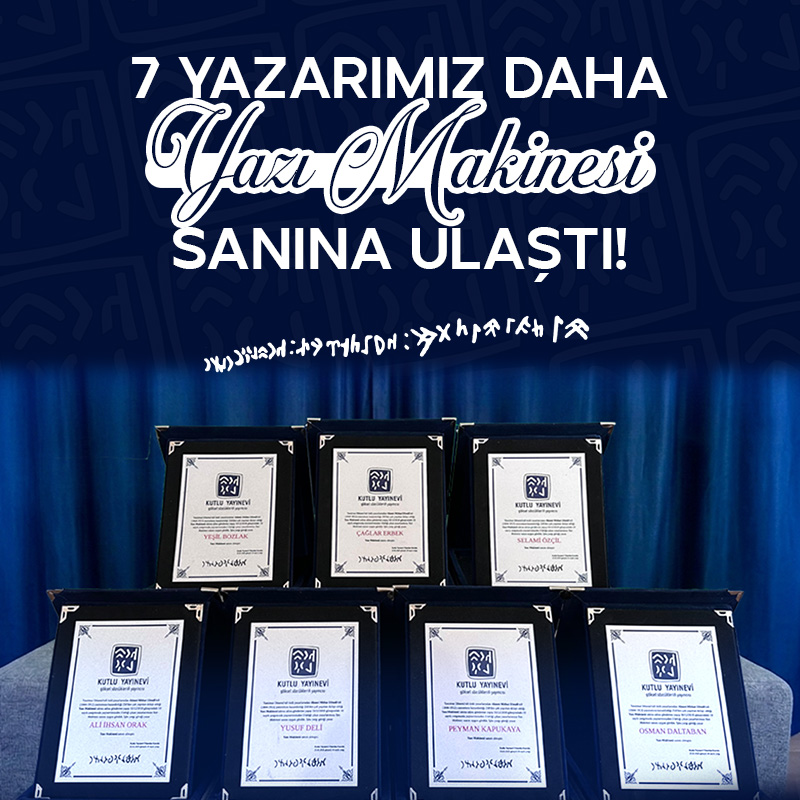 Tanzimat Dönemi’niñ ünlü yazarlarından “ Ahmet Mithat Efendi ”niñ (1844-1912) yazınımıza kazandırdığı 250’den çok yapıttan dolayı aldığı “Yazı Makinesi” takma adına gönderme yaparak 25/08/2018 günaylı 4 sayılı ve 10/12/2018 günaylı 10 sayılı yargılarımızda, yayınevimizden 3 ayrı bétiği çıkan yazarlarımıza Yazı Makinesi sanını atamayı uygun gördük.